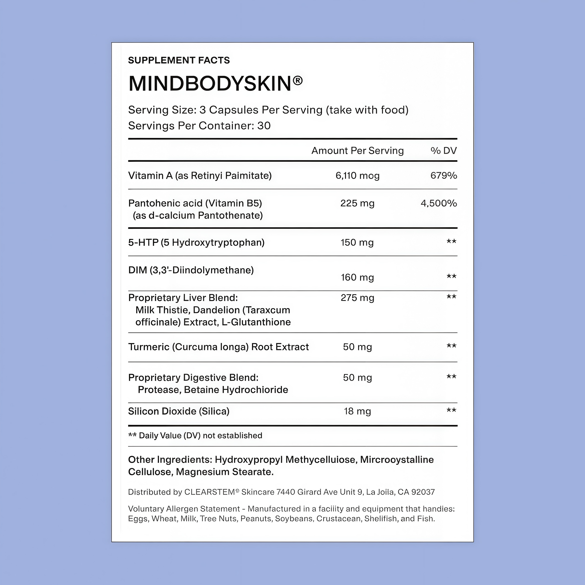 Experience clear, glowing skin with MINDBODYSKIN®, the all-natural hormonal acne supplement that supports balance, detox, and calm from the inside out.