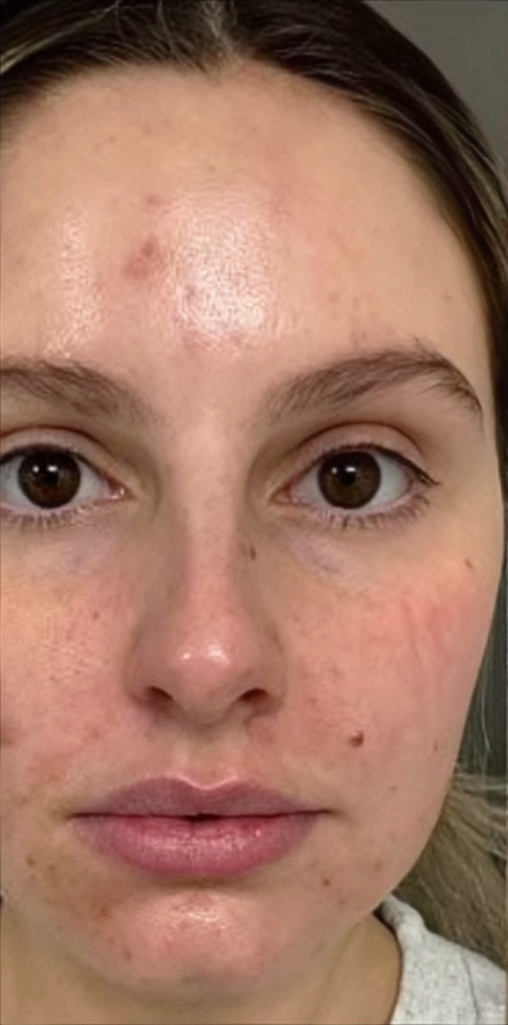 Customers will not notice much for the first few days, but then may experience a better stress-response and feelings of calm and peace. After 1 week customers should notice less new acne and a reduction in size and inflammation of pre-existing acne. After 2 weeks customers should see a significant reduction in both new and existing acne, along with elevated feelings of well-being. After 1 month, customers should notice a smoother menstrual experience, better sleep, and significantly clearer skin that heals faster and is less oily throughout the day.